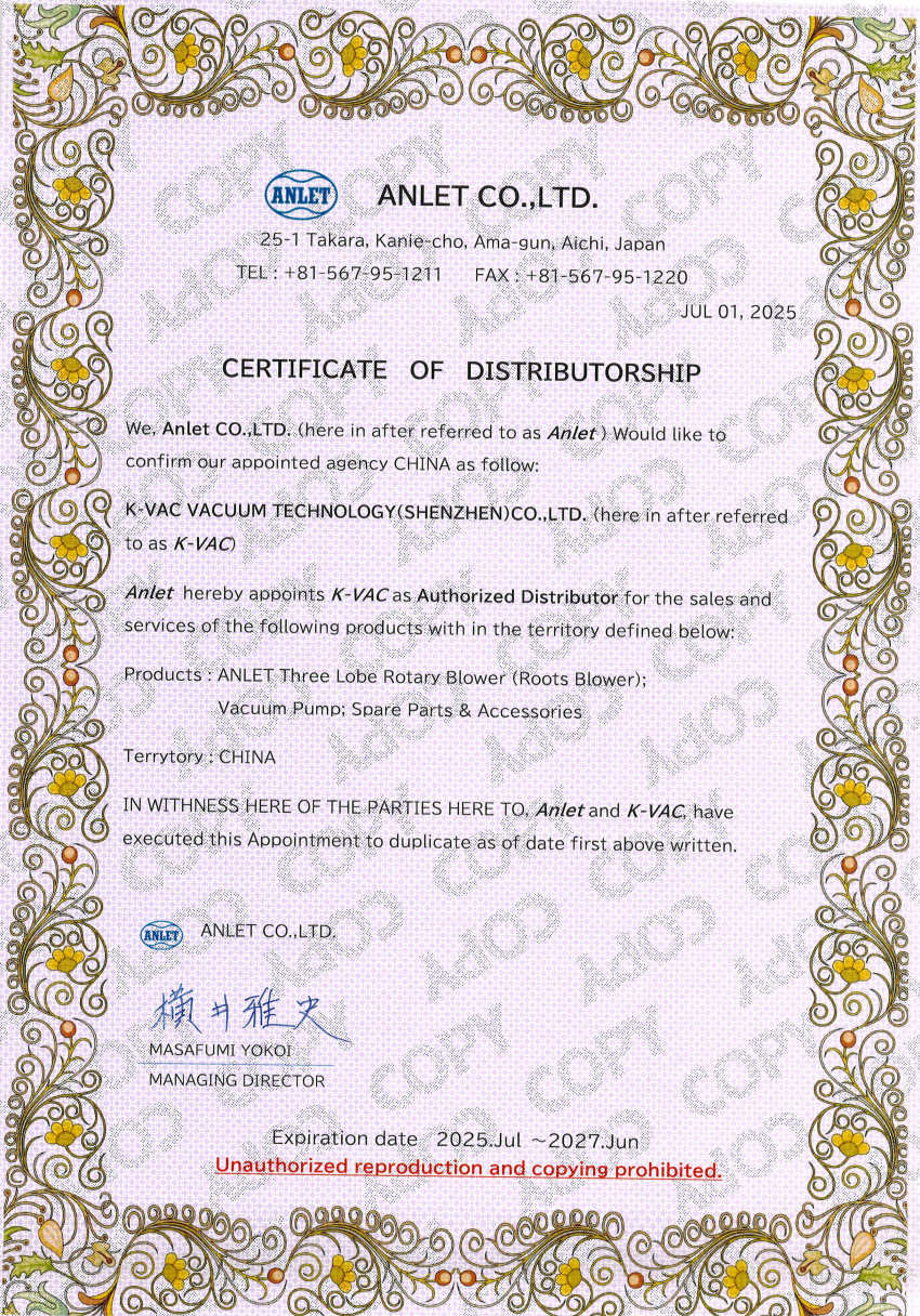 ANLET was founded in 1944, main products are root blower and vacuum pump. The BS series 3 lobe blower & vacuum pump was launched the next year in 1945. With more than 80 years history, Anlet products has proved its quality and stability in the market. The annul market sales keeps increasing year by year.
