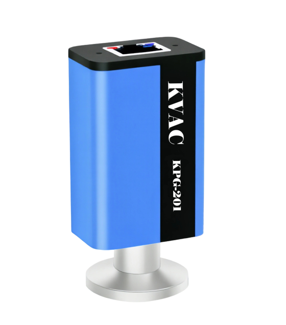 The measurement range of the KPG-201 vacuum gauge is 5.0×10-2 ~ 1×105 Pa. It operates based on the principle of heat conduction, where the heat loss rate of the heating filament depends on the pressure of the gas surrounding it. The measured values of the vacuum gauge are output as corresponding analog signals through the RJ45 connector.